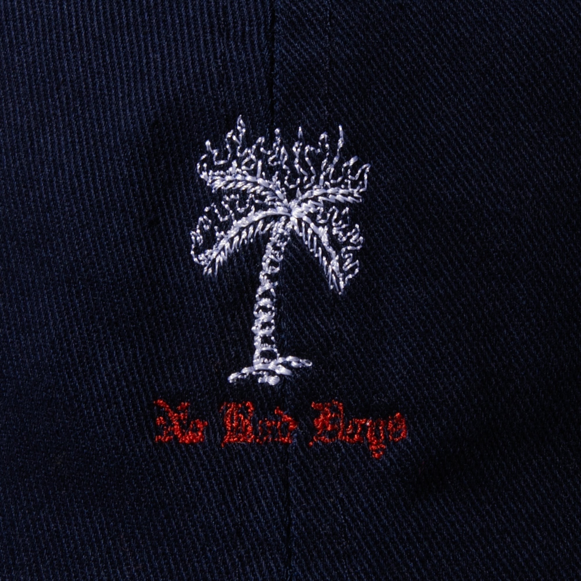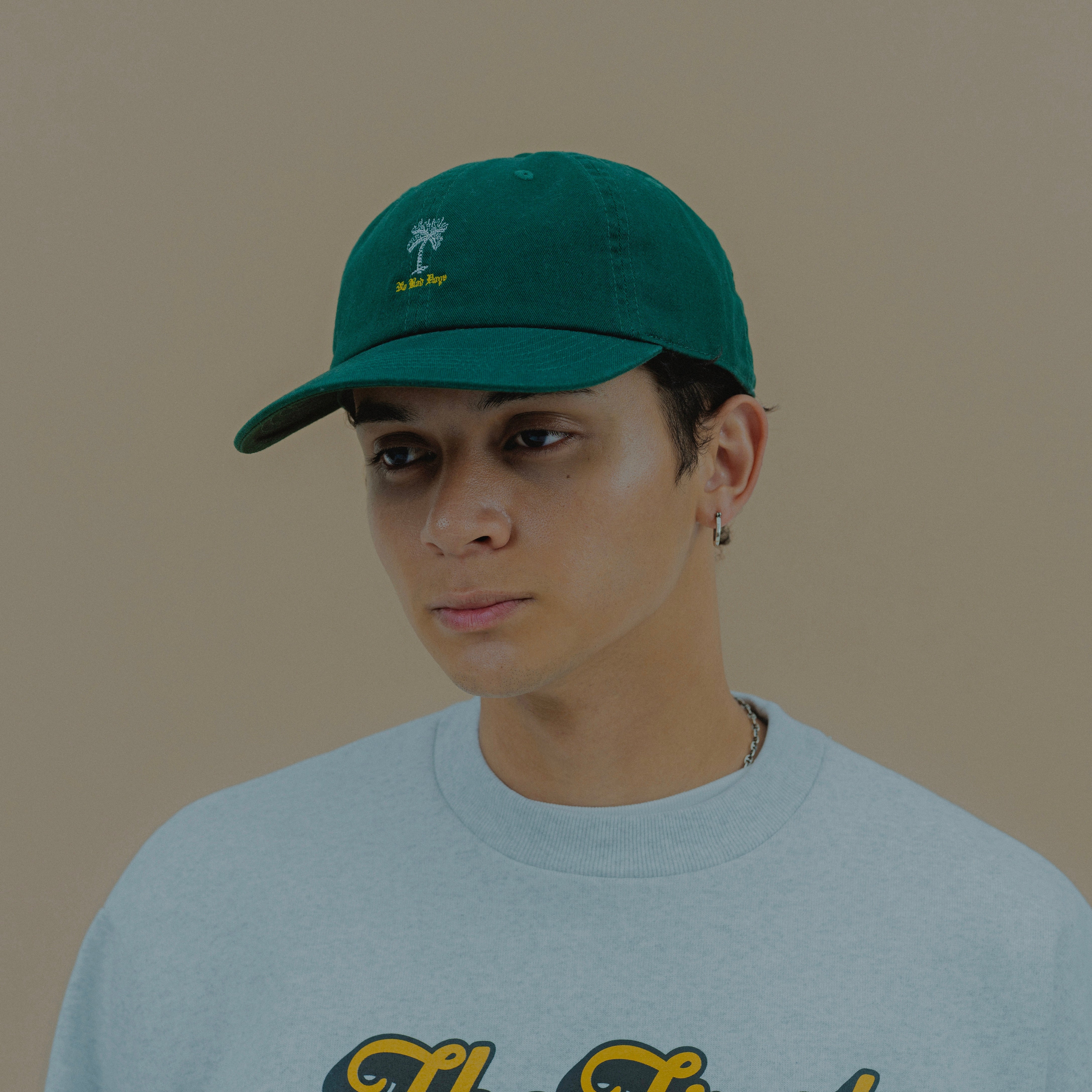 フロント部分の刺繍がシンプルかつインパクト大なデザインで個性を発揮します。着こなしの善し悪しを問わないアイテムです。
